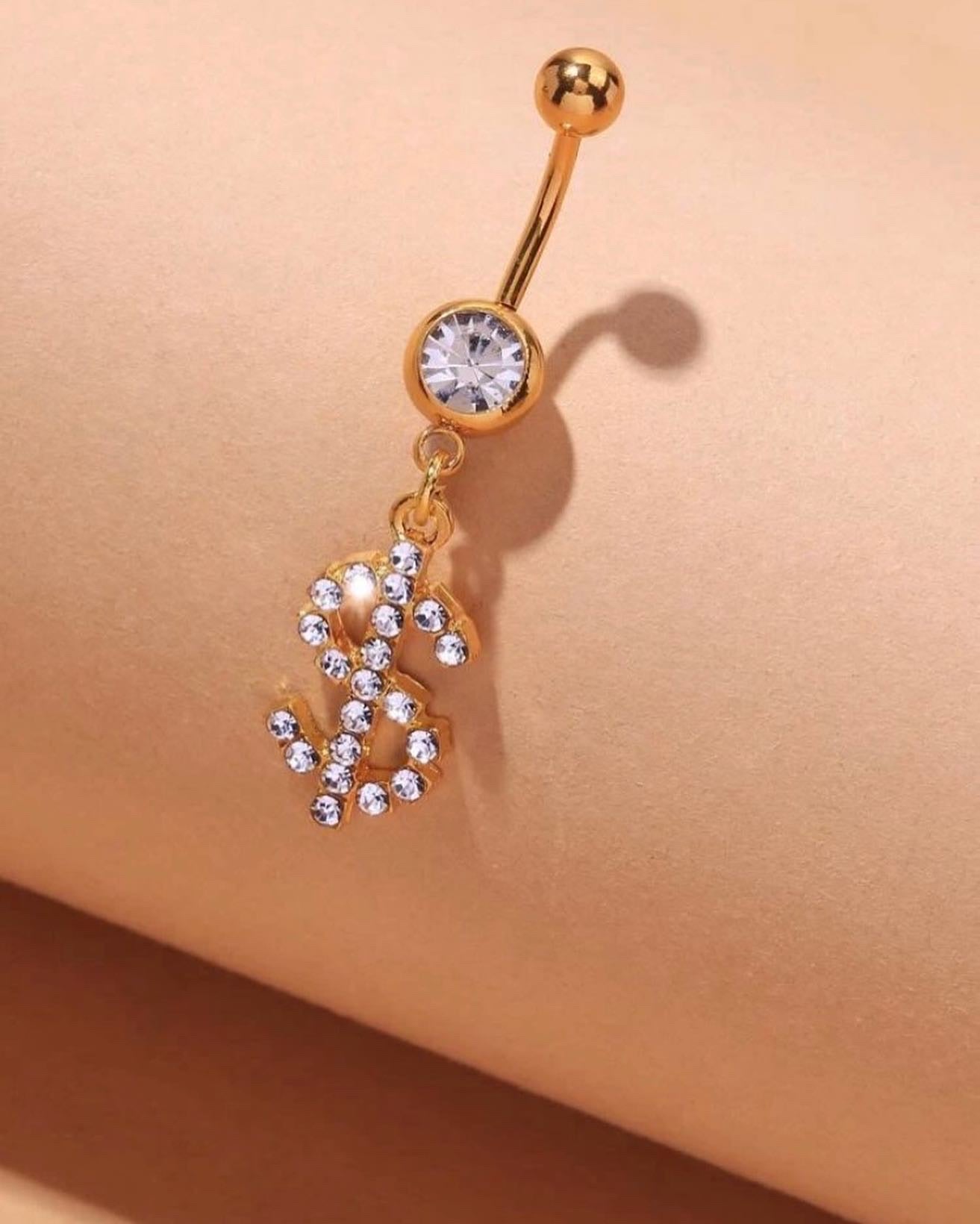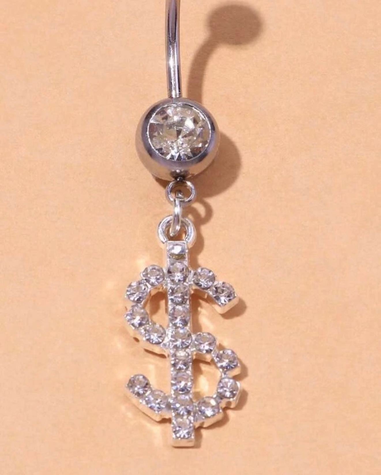 Gold/Silver money $ign belly ring. Belly piercing is required.