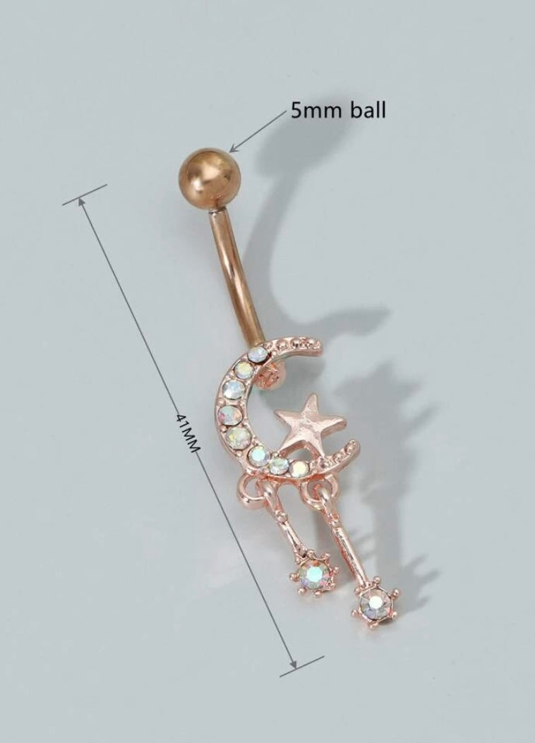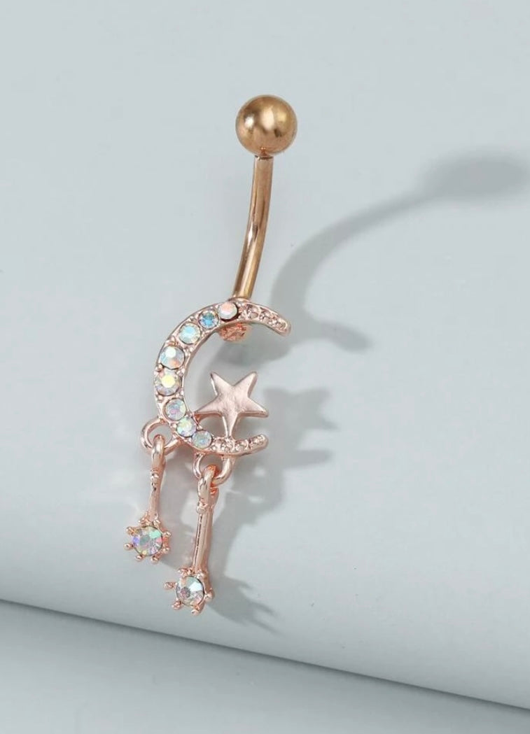 Rose gold iridescent moon/star belly ring. Belly piercing is required. Sailor moon inspired.