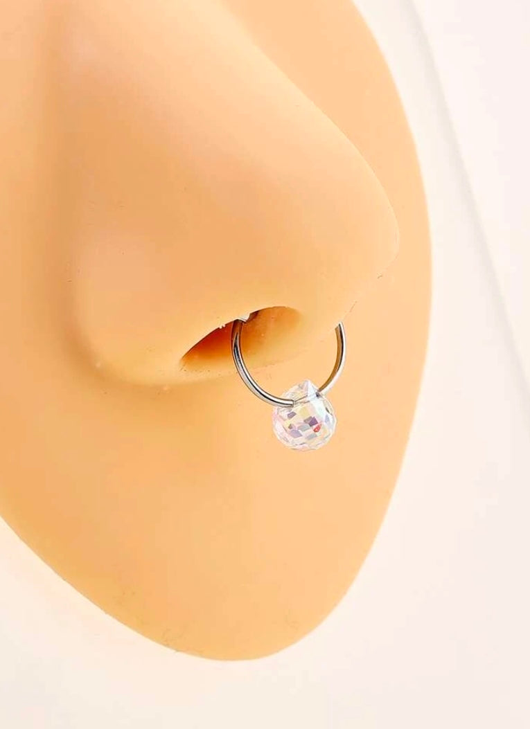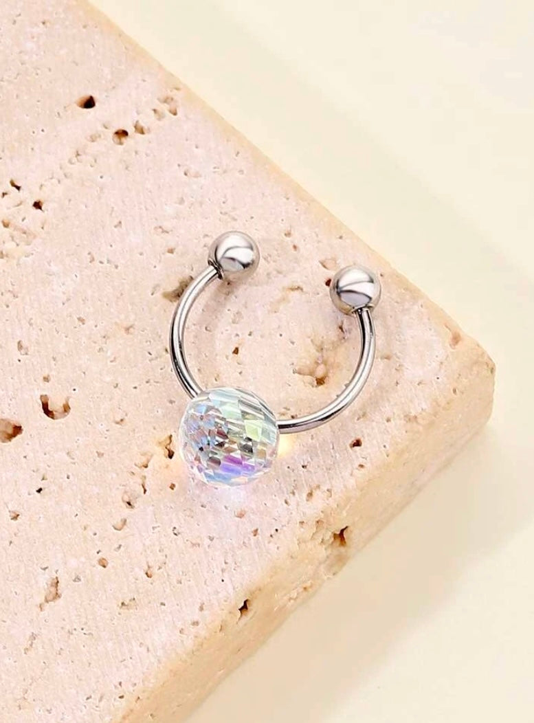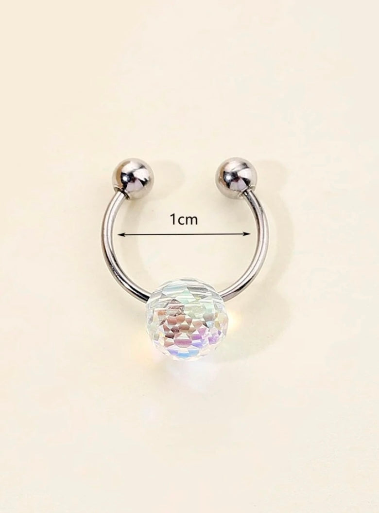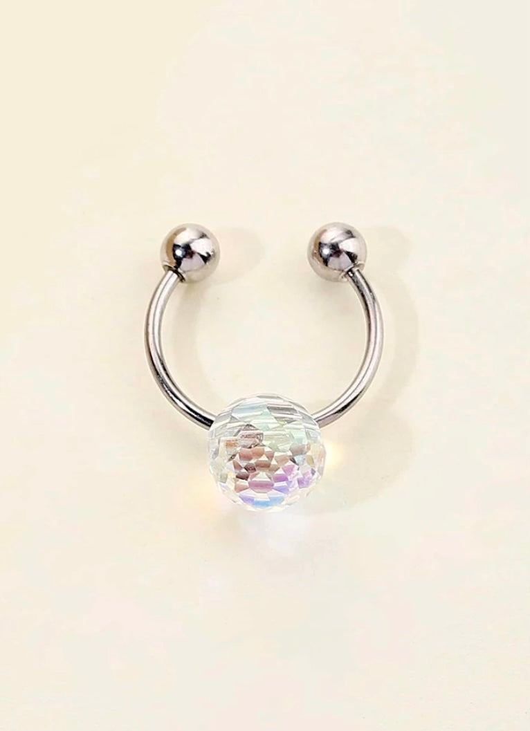 Silver iridescent disco ball septum cuff. No septum piercing required.